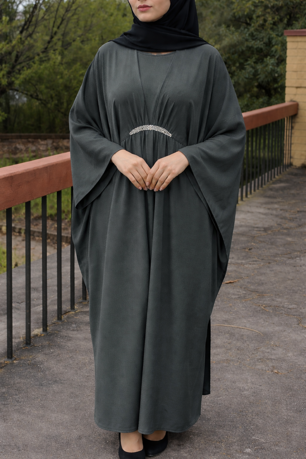Pair it with minimal accessories or elevate it with statement pieces – this abaya transitions effortlessly from day to night. (Bonus: Comes with a matching belt!)