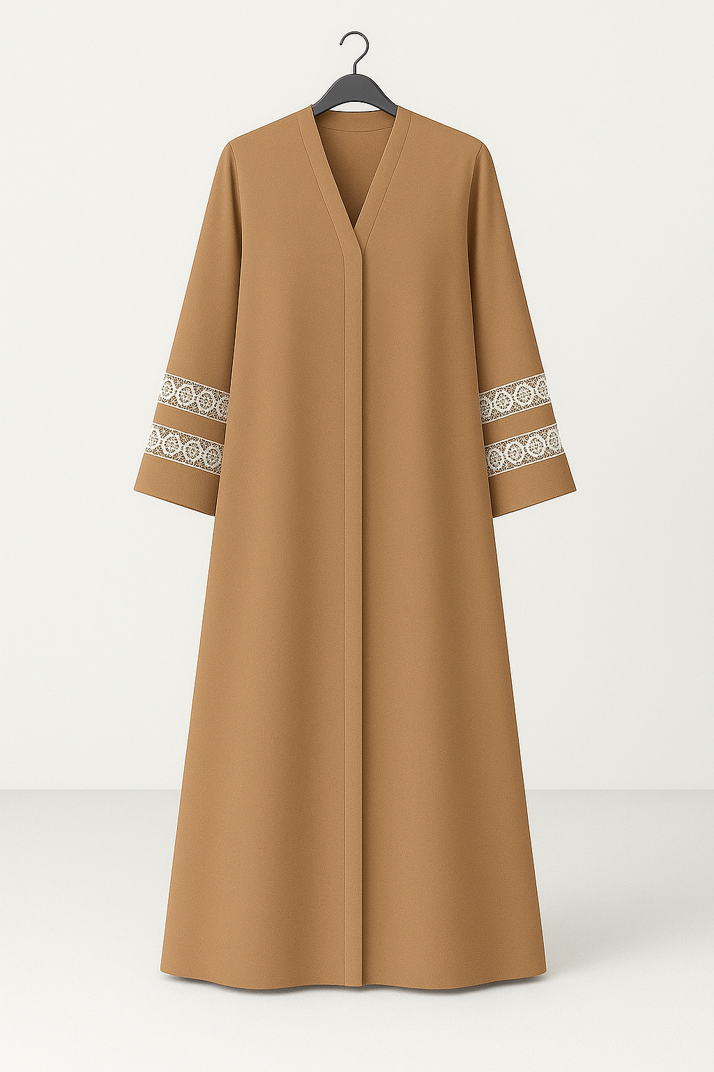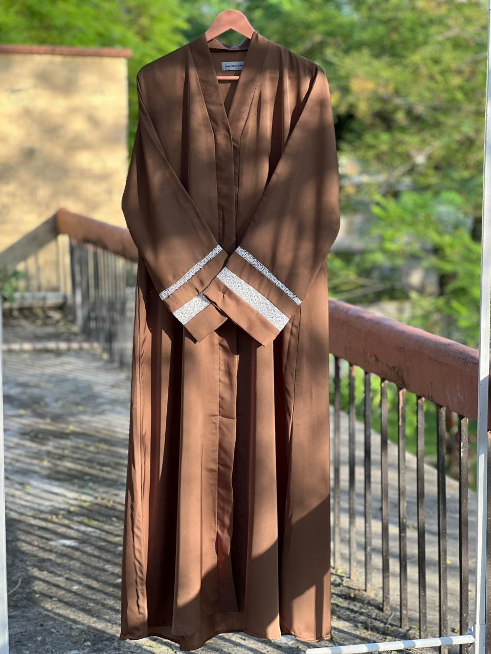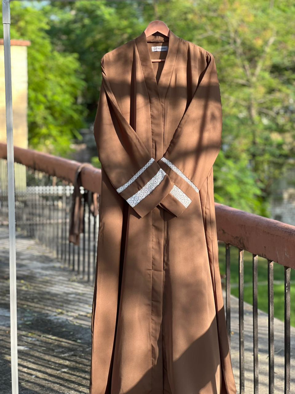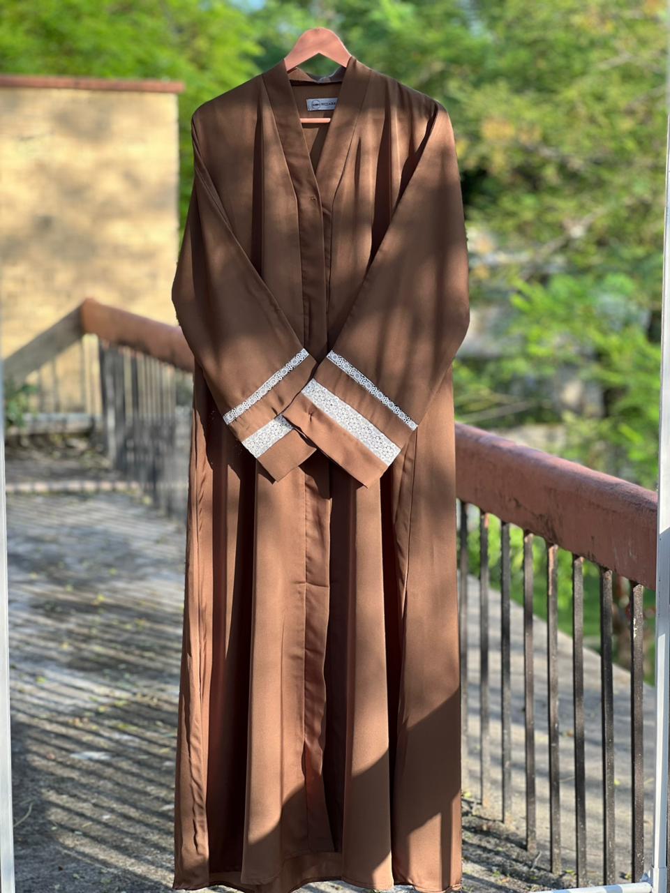 Upgrade your modest wardrobe with this elegant front-open abaya featuring delicate lace detailing on the sleeves. Designed in premium fabric with a flowy cut, it’s perfect for everyday wear or special occasions.