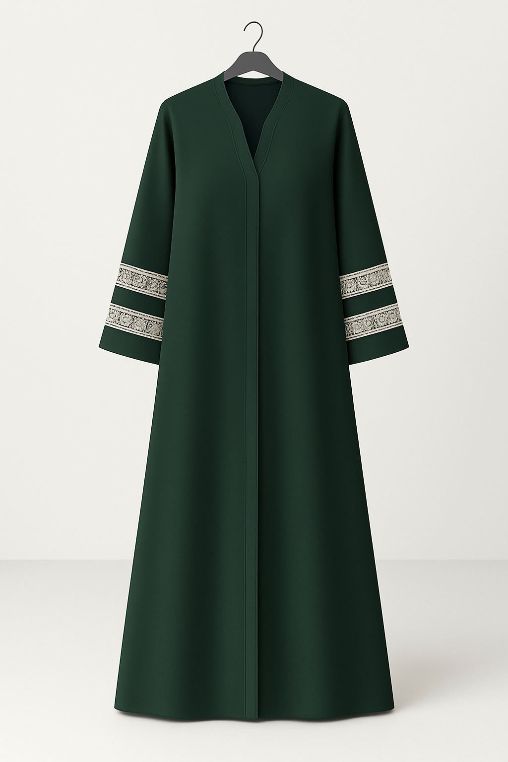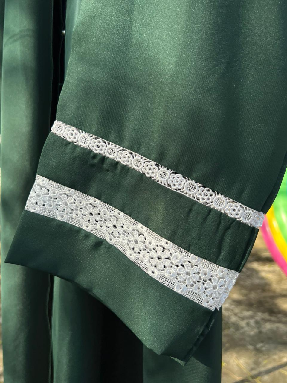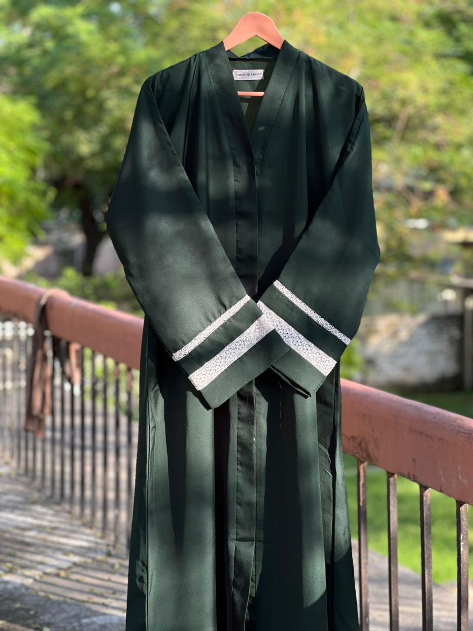 Upgrade your modest wardrobe with this elegant front-open abaya featuring delicate lace detailing on the sleeves. Designed in premium fabric with a flowy cut, it’s perfect for everyday wear or special occasions.