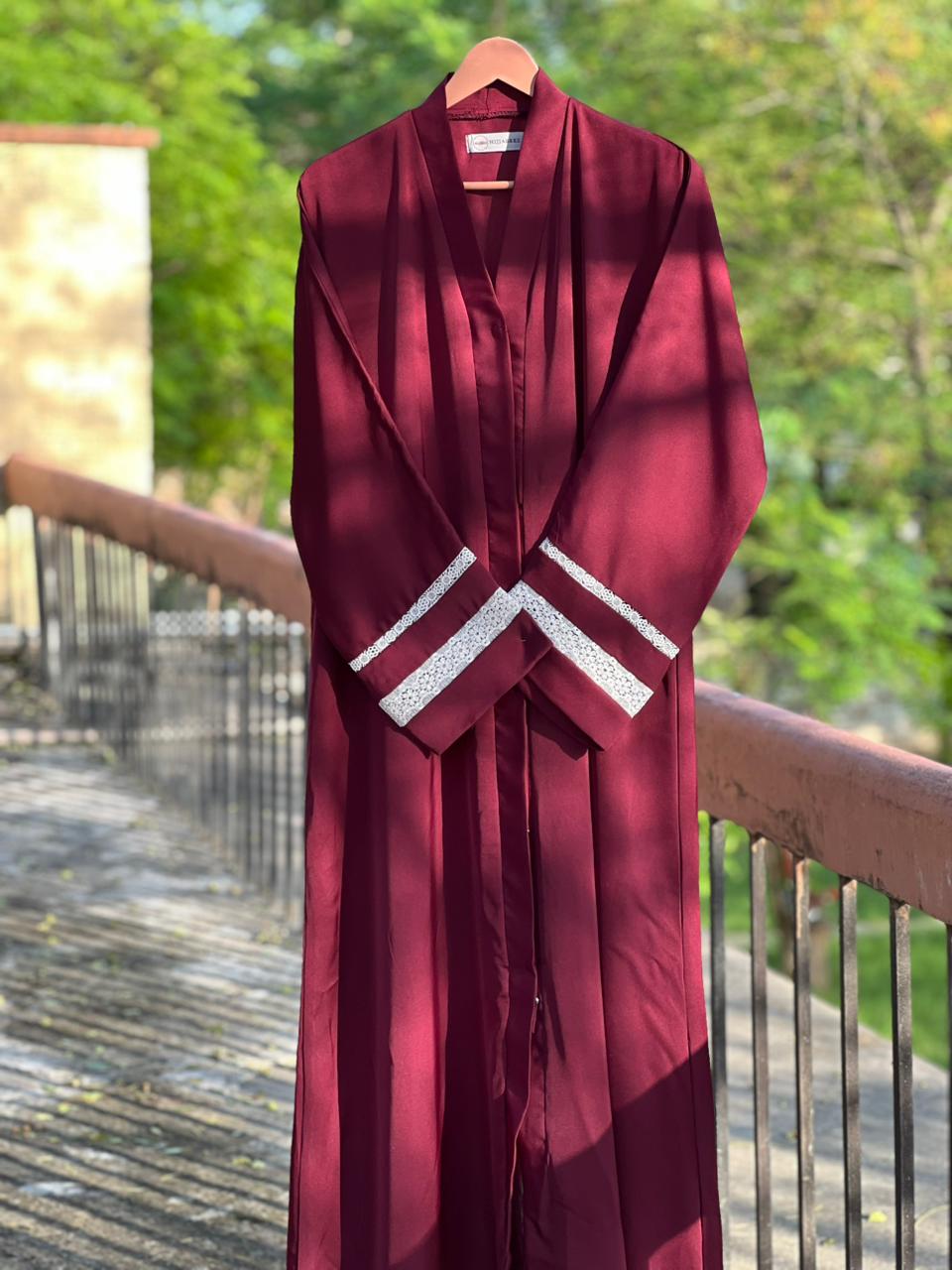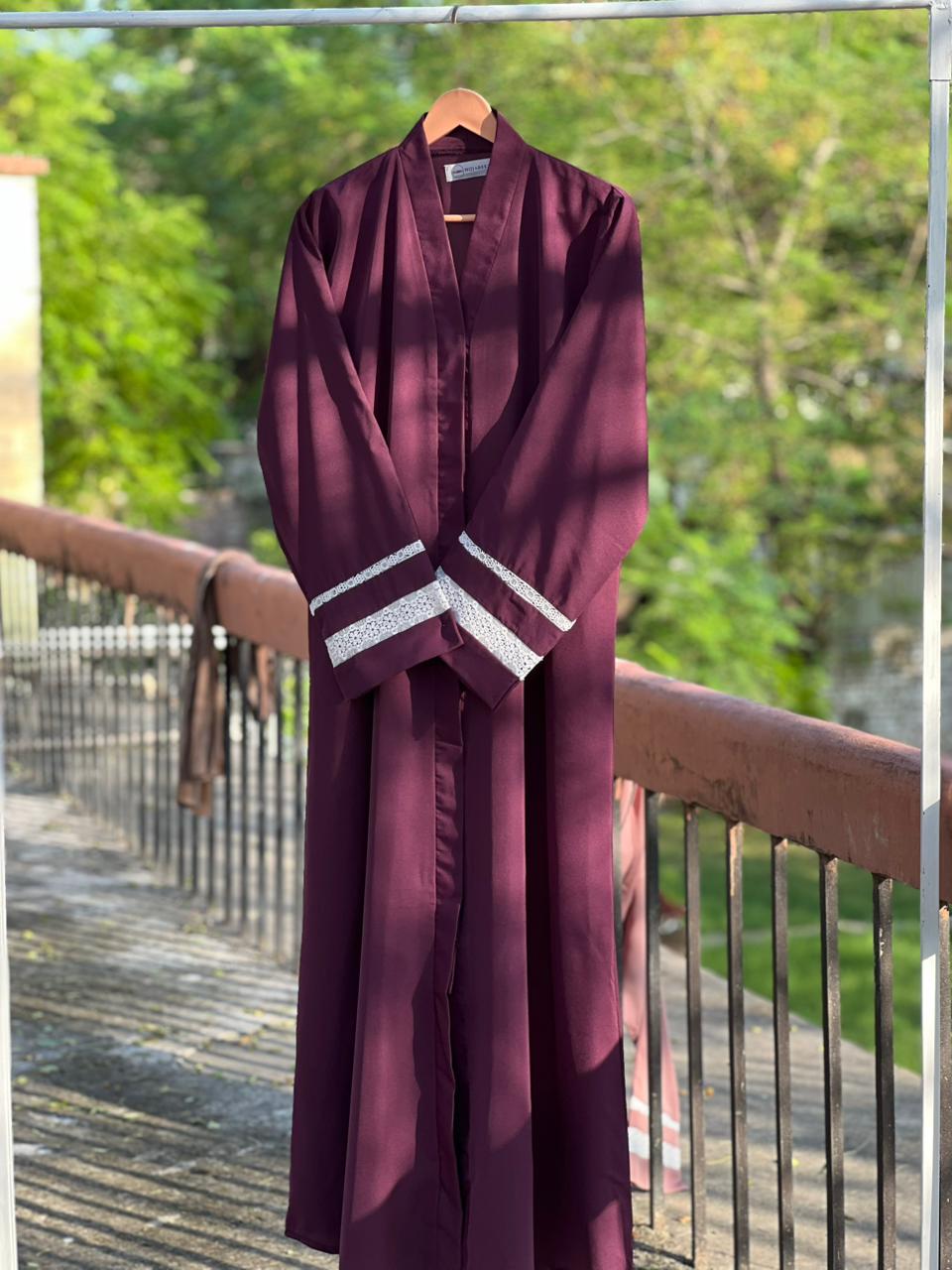 Upgrade your modest wardrobe with this elegant front-open abaya featuring delicate lace detailing on the sleeves. Designed in premium fabric with a flowy cut, it’s perfect for everyday wear or special occasions.