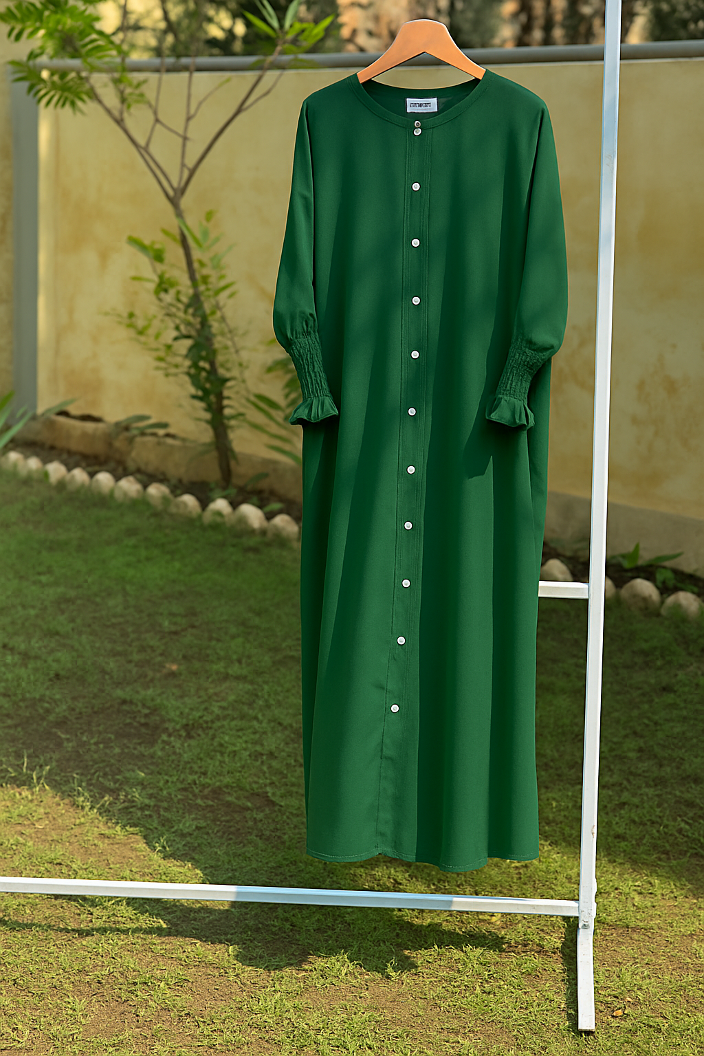 Rifle – Green (The effortless Button-Down Abayah 🌸)