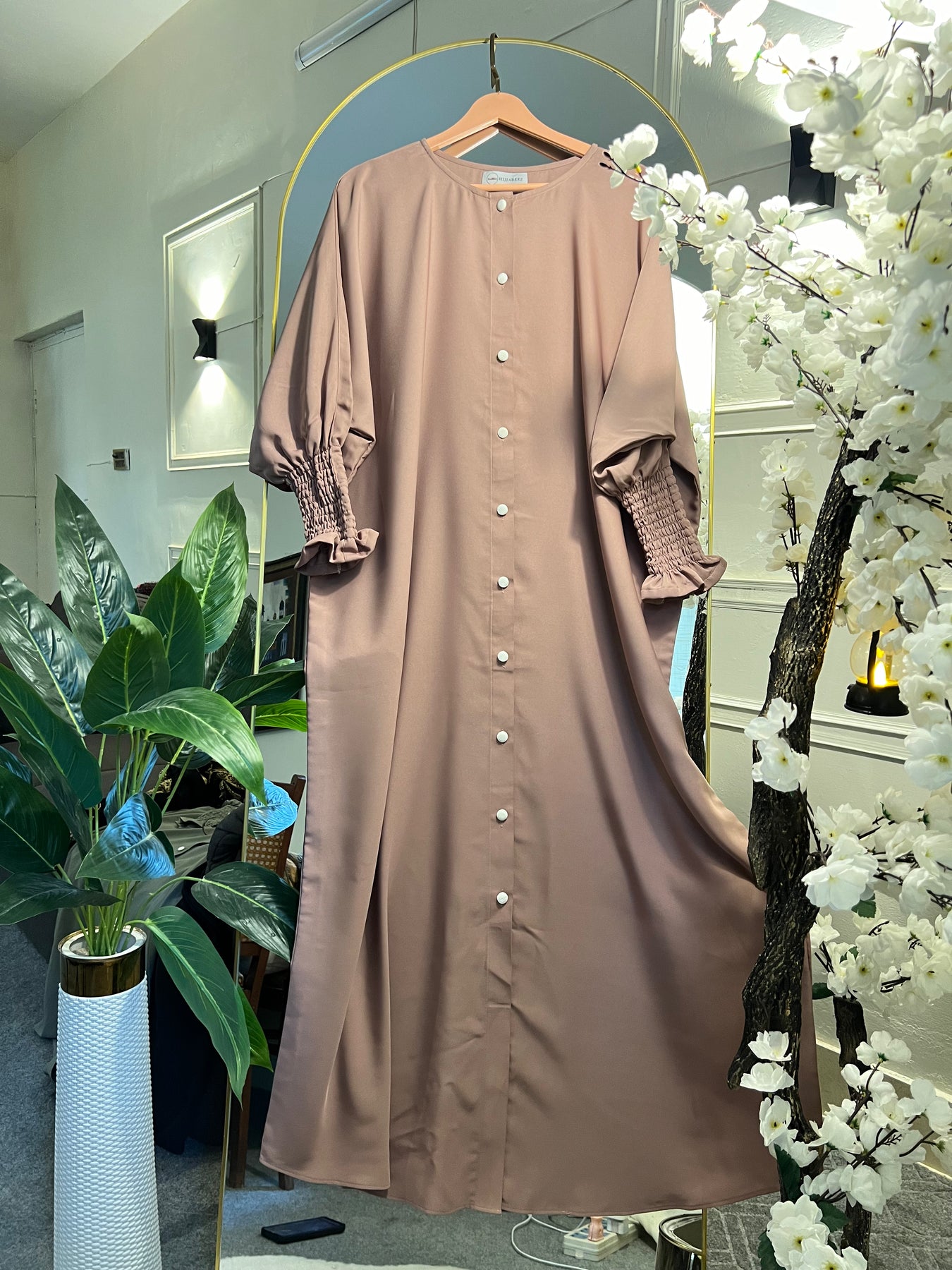 • Features smocked cuffs for a stylish and modest finish.